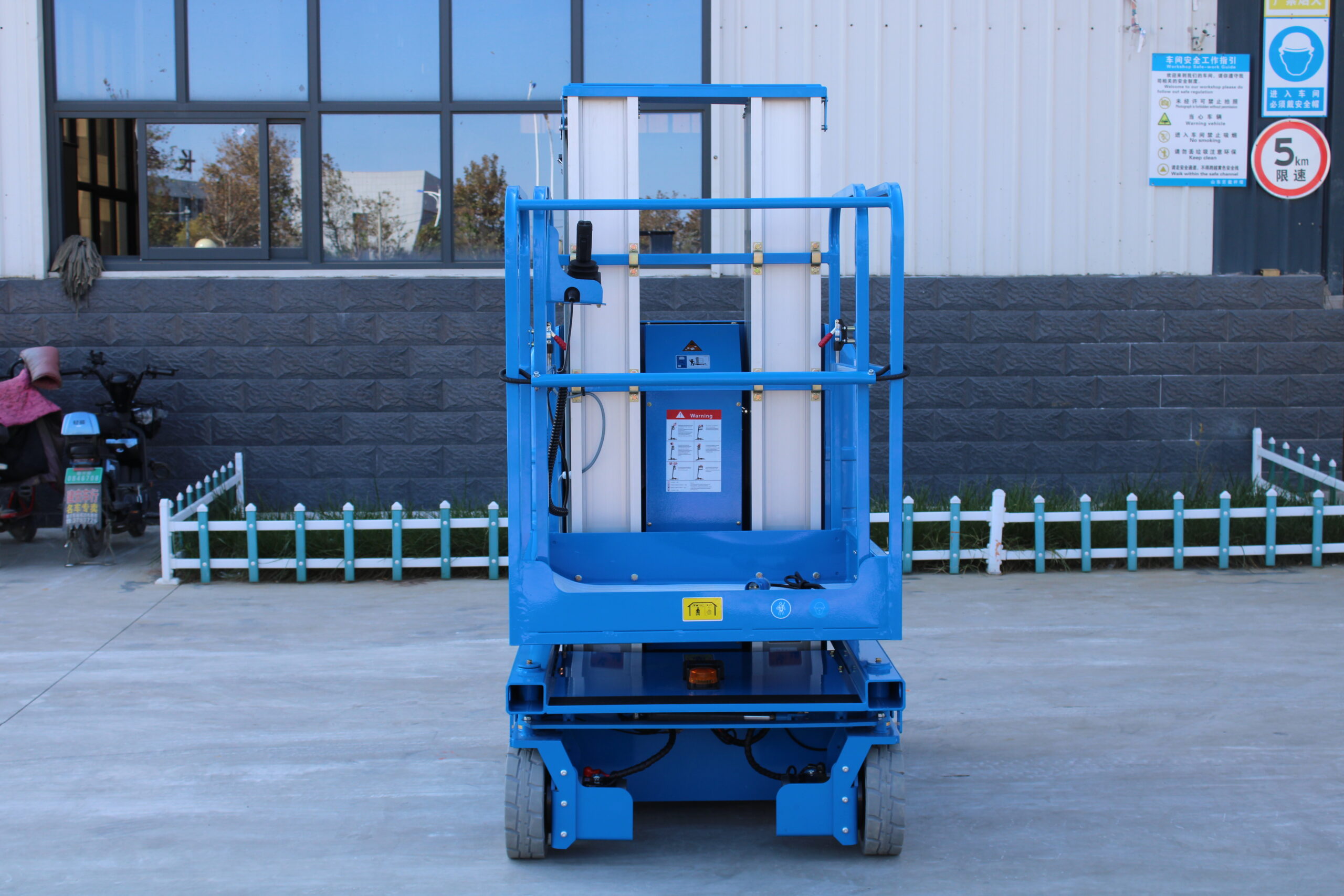 As a specialized self-propelled vertical lift manufacturer, we use high-grade aluminum alloy masts, reinforced steel frames, and imported core components (motors, hydraulic valves). Each unit undergoes rigorous testing – mobility performance, lifting stability, and safety function tests – before delivery, complying with global industrial and accessibility standards.
